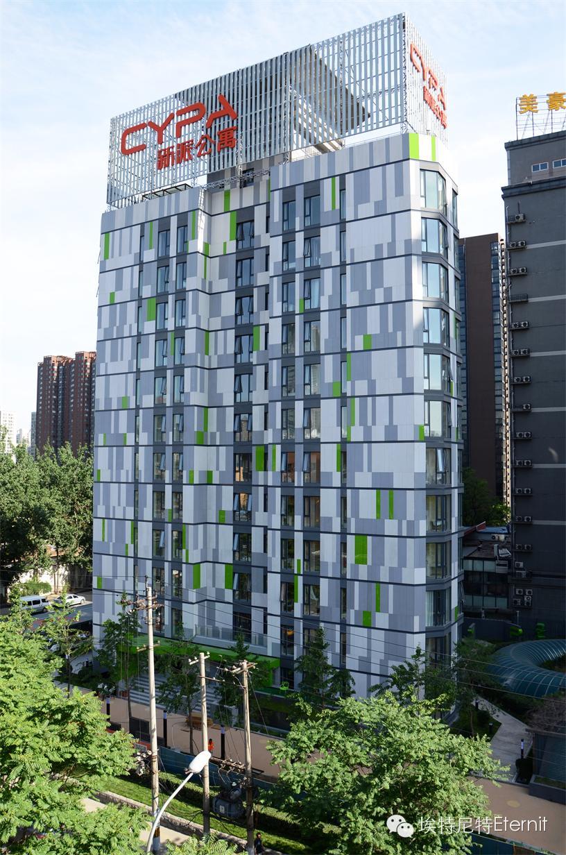 埃特尼特佳美系列外墻板質(zhì)量輕,安裝簡(jiǎn)易,可縮短施工時(shí)間,降低勞動(dòng)成本,特別適用于舊建筑翻新改造。北京新派公寓是新派公寓的全國(guó)旗艦店,位于北京CBD核心商圈,由破舊的森德大廈改造而成,整棟公寓擁有地上12層及地下3層,共101個(gè)房間。