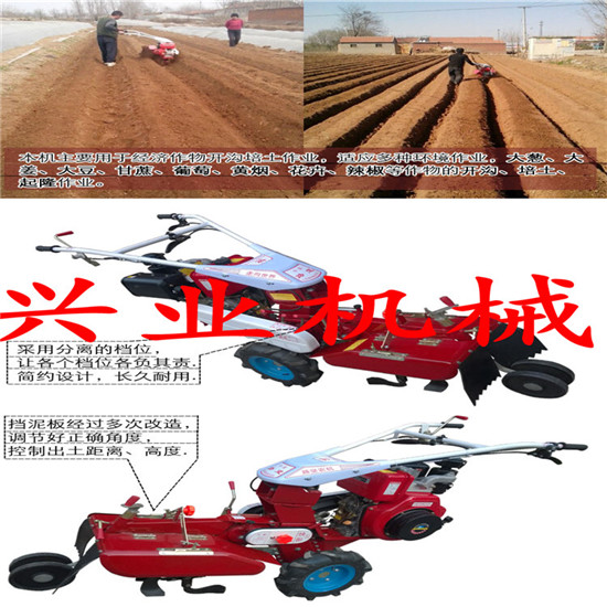 本機(jī)主要用于農(nóng)業(yè)大棚和農(nóng)田旋耕、開荒、松土、開溝、培土、起壟等。依靠開溝作業(yè),使表土和深土混合,改進(jìn)土壤,增進(jìn)地力