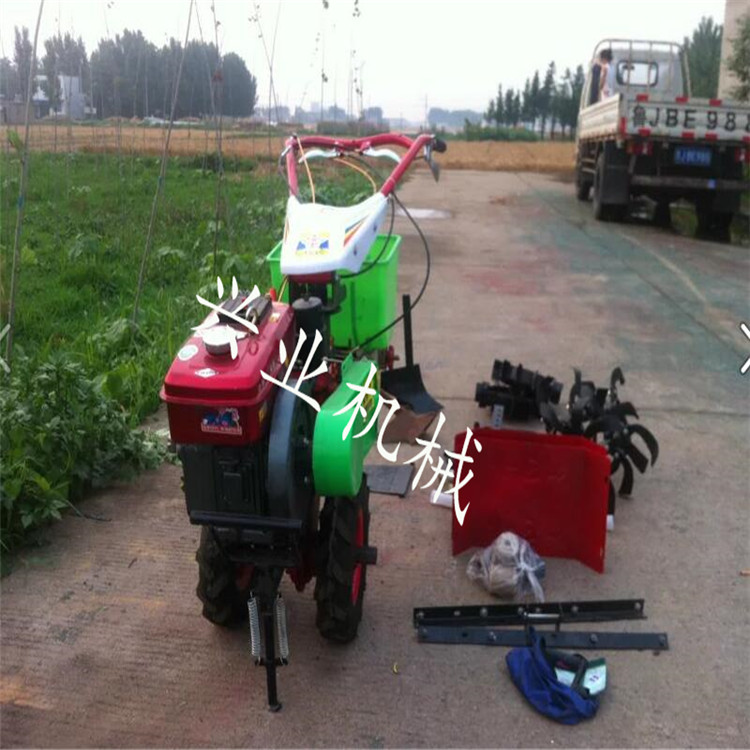開溝培土機安裝上不同的配件可以開溝、起壟、培土、打藥、播種、旋耕、松土、中耕、深耕、除草、施肥、噴藥殺蟲、噴淋、收割、鋪