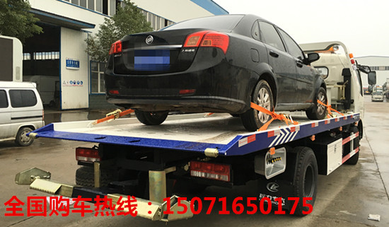 5、平板型道路清障車(chē),平板上用綁帶固定故障車(chē)時(shí),必須四條綁帶都要鎖緊在車(chē)輪或車(chē)身。