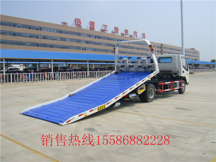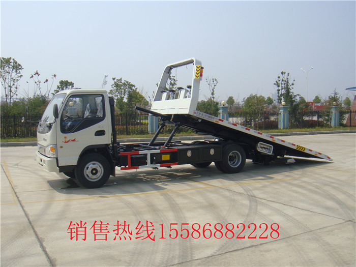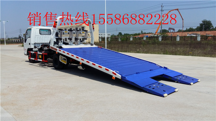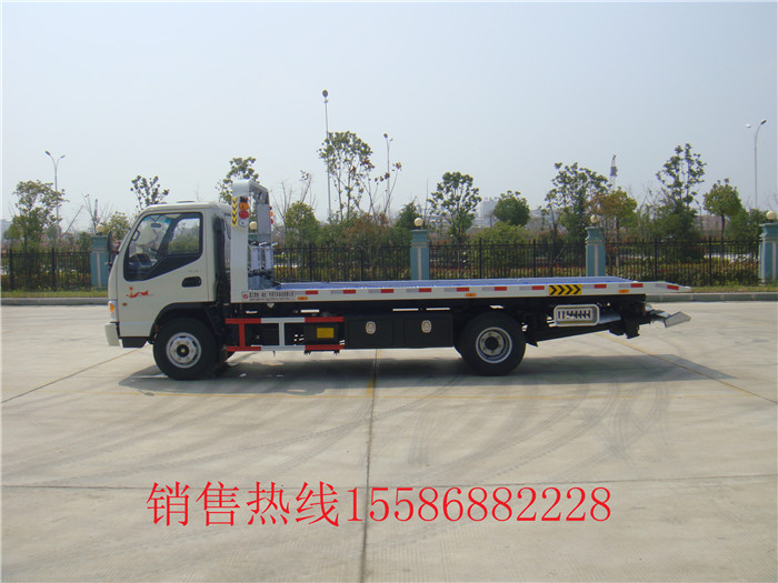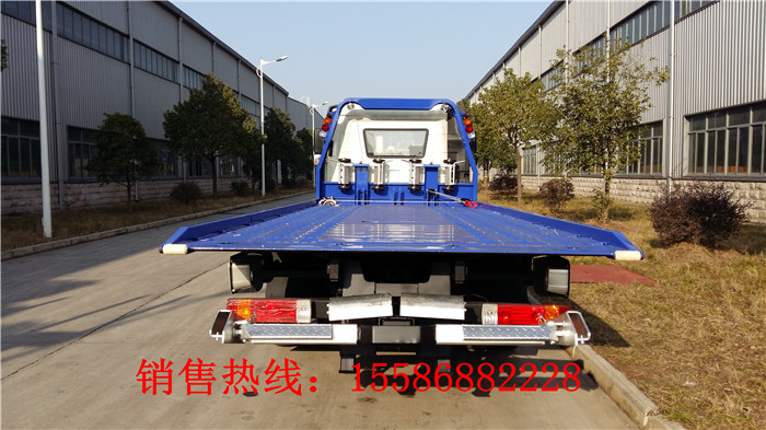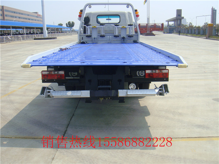 東風(fēng)銳鈴藍(lán)牌平板清障車/藍(lán)牌一拖二清障車:是一款小型平板清障車。東風(fēng)福瑞卡平板清障車底盤采用朝柴95馬力經(jīng)濟(jì)型發(fā)動(dòng)機(jī),7.00-16輪胎,氣剎制動(dòng),軸距3300mm,駕駛室單排可翻。專用部分:可拖一輛3噸小轎車,可帶后拖臂,帶一個(gè)3噸液壓絞盤,鋼絲繩長25米,左右工具箱一個(gè),最大托舉1500KG,工作照明燈2只,長警燈1只等。該車整車4.6米,平板長4.3米+0.9米可液壓翻轉(zhuǎn)平板。 C照可以開 .