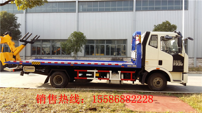 解放J6一拖二清障車:錫柴140馬力,中冷增壓CA4DF3-14E3F發(fā)動(dòng)機(jī);一排半駕駛室,隨車工具,改裝配置:LED工程燈壹個(gè),雙輔助小輪壹套,綁帶肆根,L型拖叉壹對。配置使用手冊,說明書,底盤合格證,整車合格證及上戶手續(xù)。