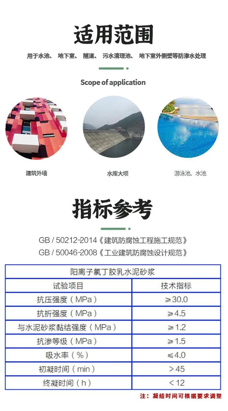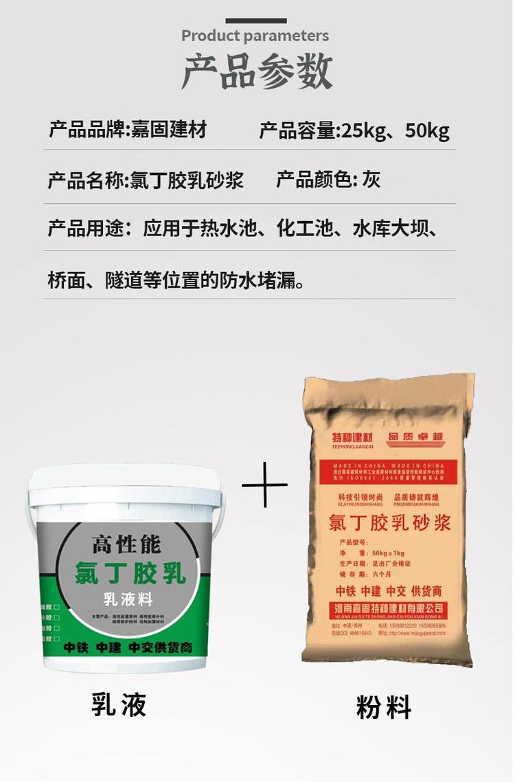 氯丁膠乳砂漿雙組份耐酸堿防水防腐抗?jié)B陽離子氯丁膠乳防水砂漿 |
