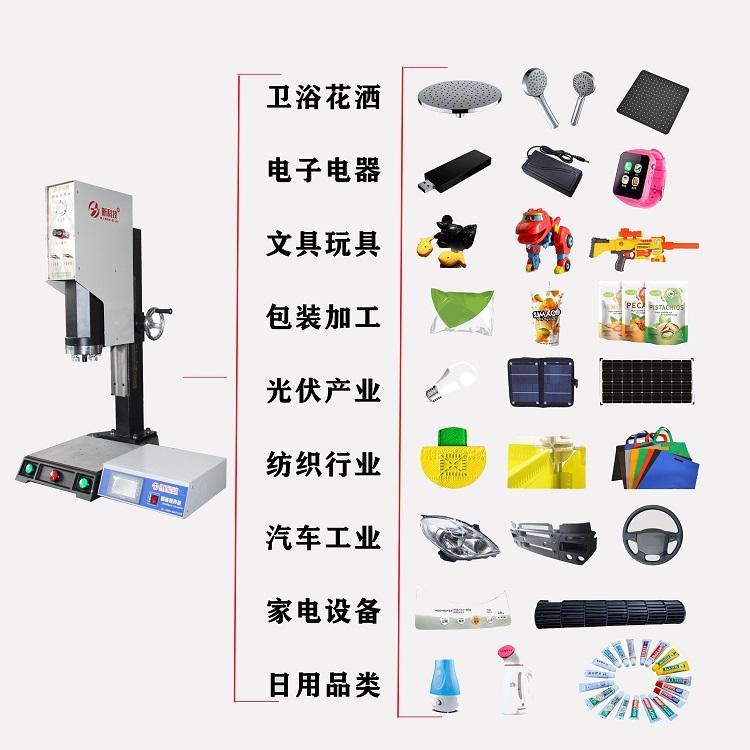 超聲波塑焊機是將超聲波通過焊頭傳導至塑料加工零件上,使兩塑料接合面因受超聲波作用而產(chǎn)生劇烈摩擦,摩擦熱使塑料接合面熔化而完成膠合。該技術具有速度快,焊縫牢固等優(yōu)點,更重要的是可使塑料產(chǎn)品生產(chǎn)加工自動化。超聲波塑料焊接機可進行塑料熔接、埋植、成形、鉚接、點焊、切除、縫合等操作,只要焊頭加以改變即可一機做多種應用,適用于多種行業(yè):