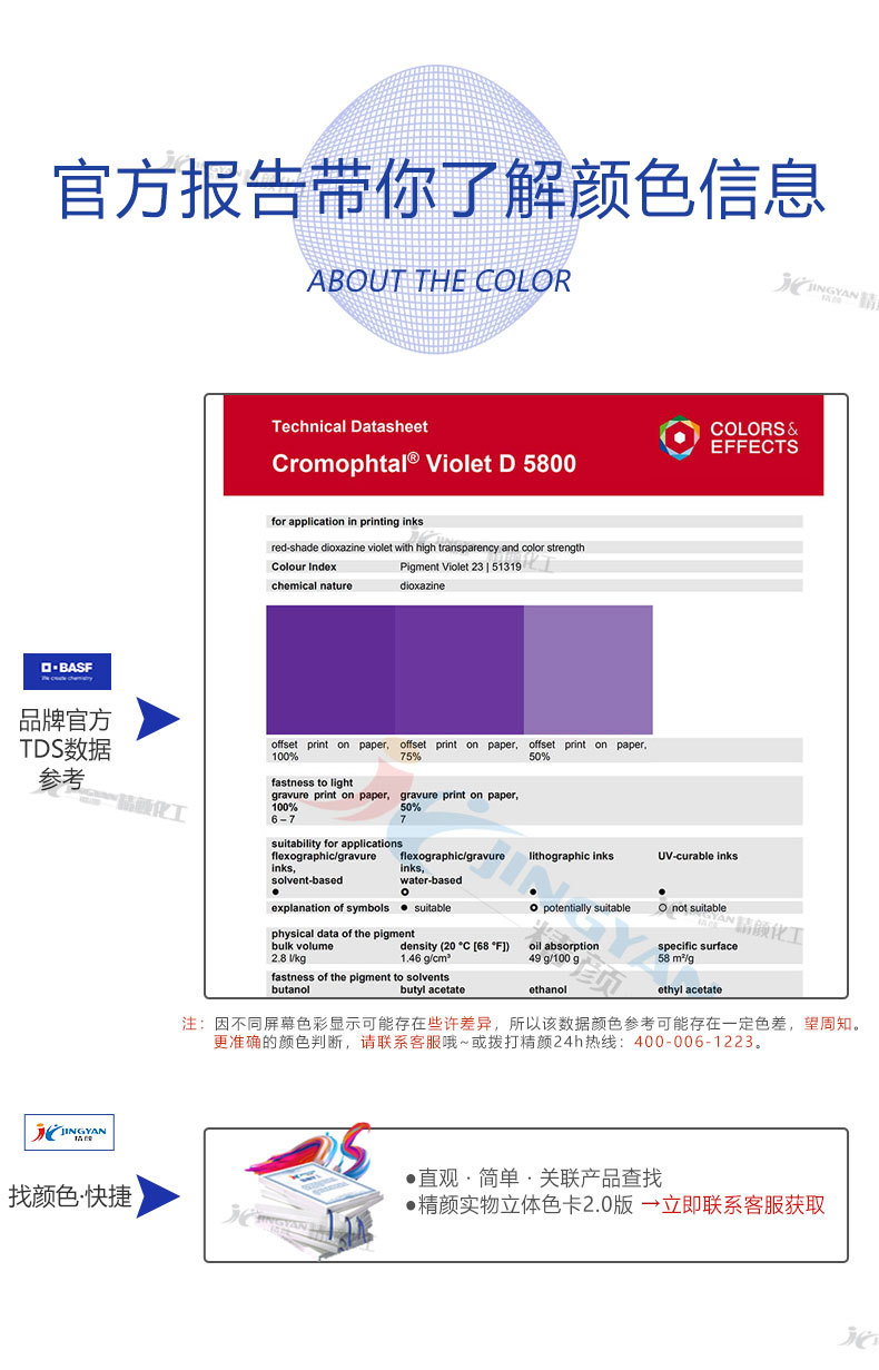 BASF巴斯夫D5800高透明有機(jī)顏料藍(lán)光紫固美透顏料紫23 |