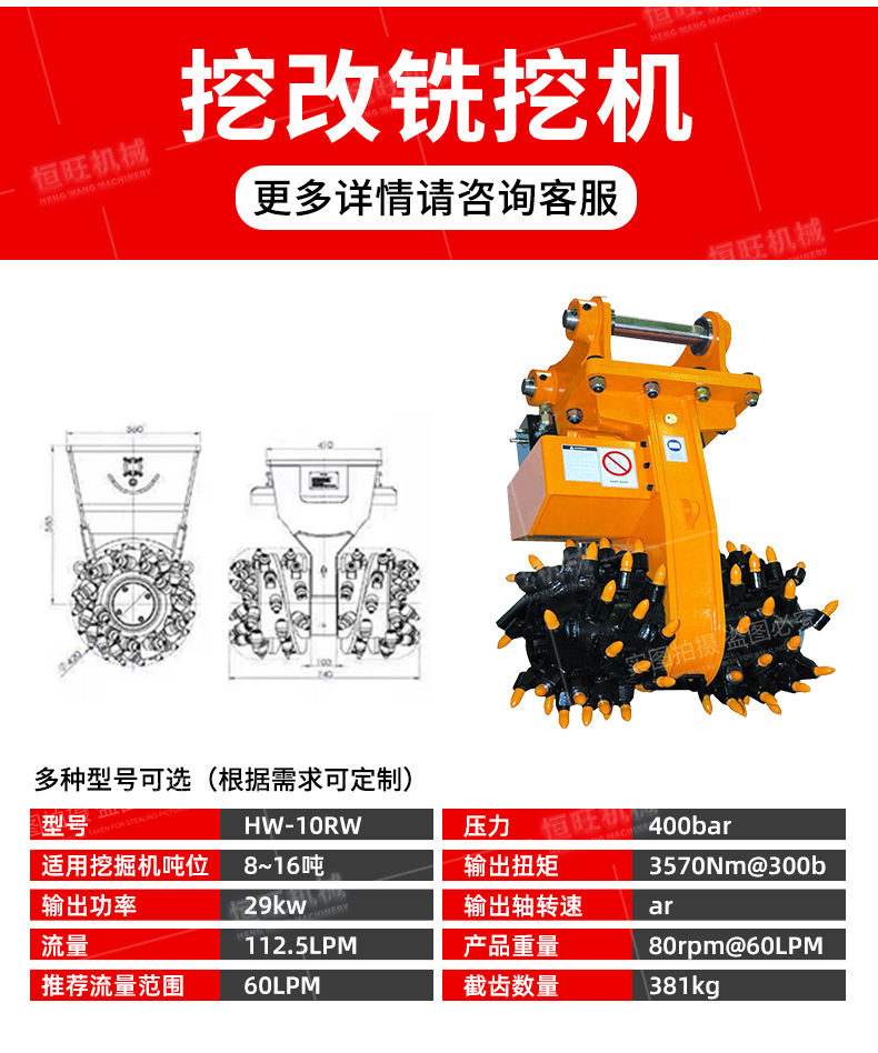 挖掘機(jī)改裝銑挖機(jī)子彈頭鉆齒隧道掘進(jìn)修正煤礦開挖 |