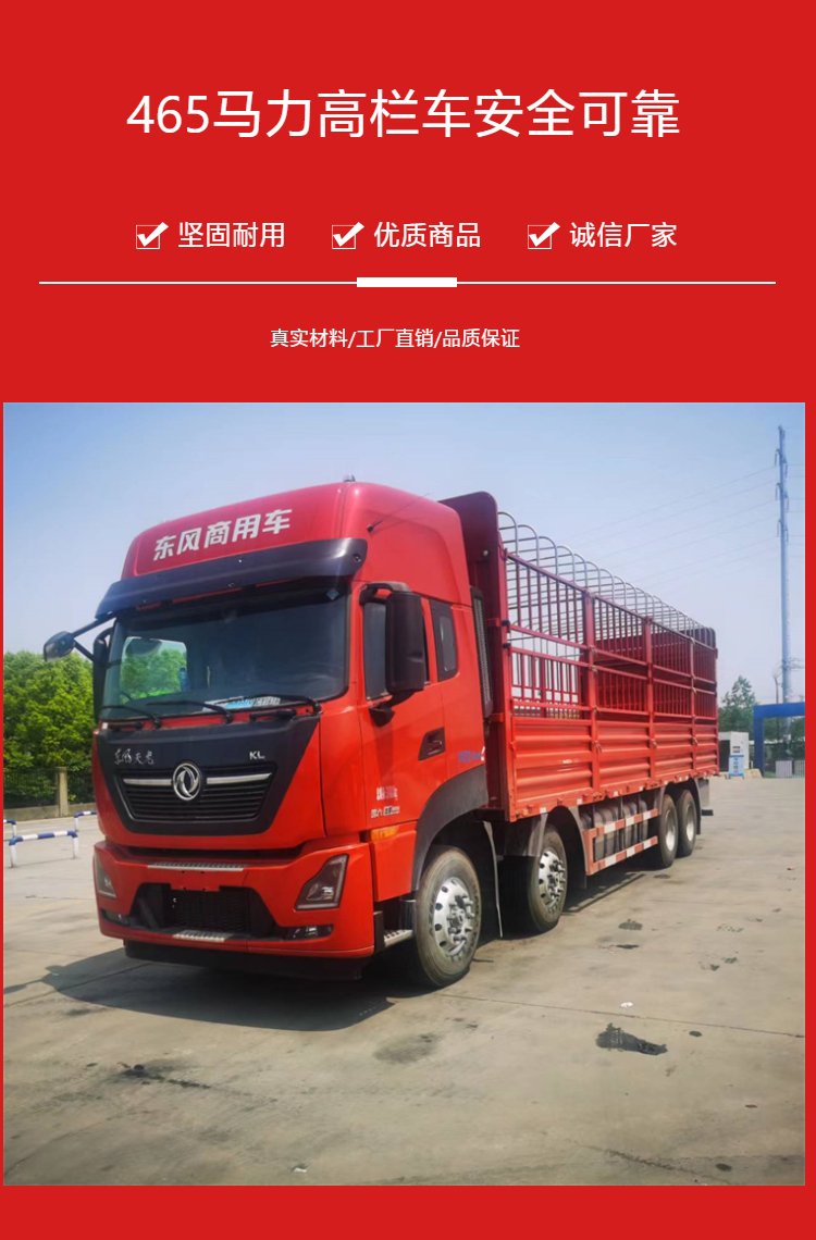 9米6高欄車東風(fēng)天龍前四后八貨車龍擎465馬力九米六倉欄車 |