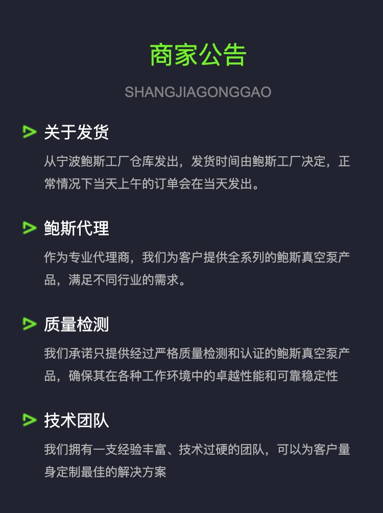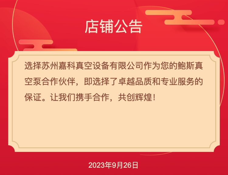 ![]() 鮑斯真空泵雙級油旋片泵BSV90 ![]() 鮑斯真空泵雙級油旋片泵BSV90 鮑斯真空泵雙級油旋片泵BSV90主要參數(shù): ![]() 鮑斯真空泵雙級油旋片泵BSV90規(guī)格參數(shù)圖 · 無彈簧旋片,實(shí)現(xiàn)低噪音、低振動、高壽命; ![]() 鮑斯真空泵雙級油旋片泵BSV90抽速曲線 ![]() 代理證書 ![]() 公司簡介 ![]() ![]() ![]() 蘇州嘉科真空設(shè)備有限公司:成為鮑斯真空泵授權(quán)代理商的卓越之選 ![]() |