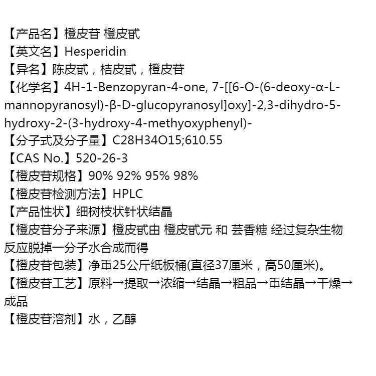 橙皮苷90天然植物提取物淡黃色結(jié)晶性粉末陳皮甙 |