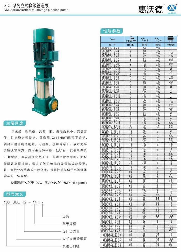 惠沃德?lián)P程132米多級泵40GDL6-12x11立式增壓泵 |