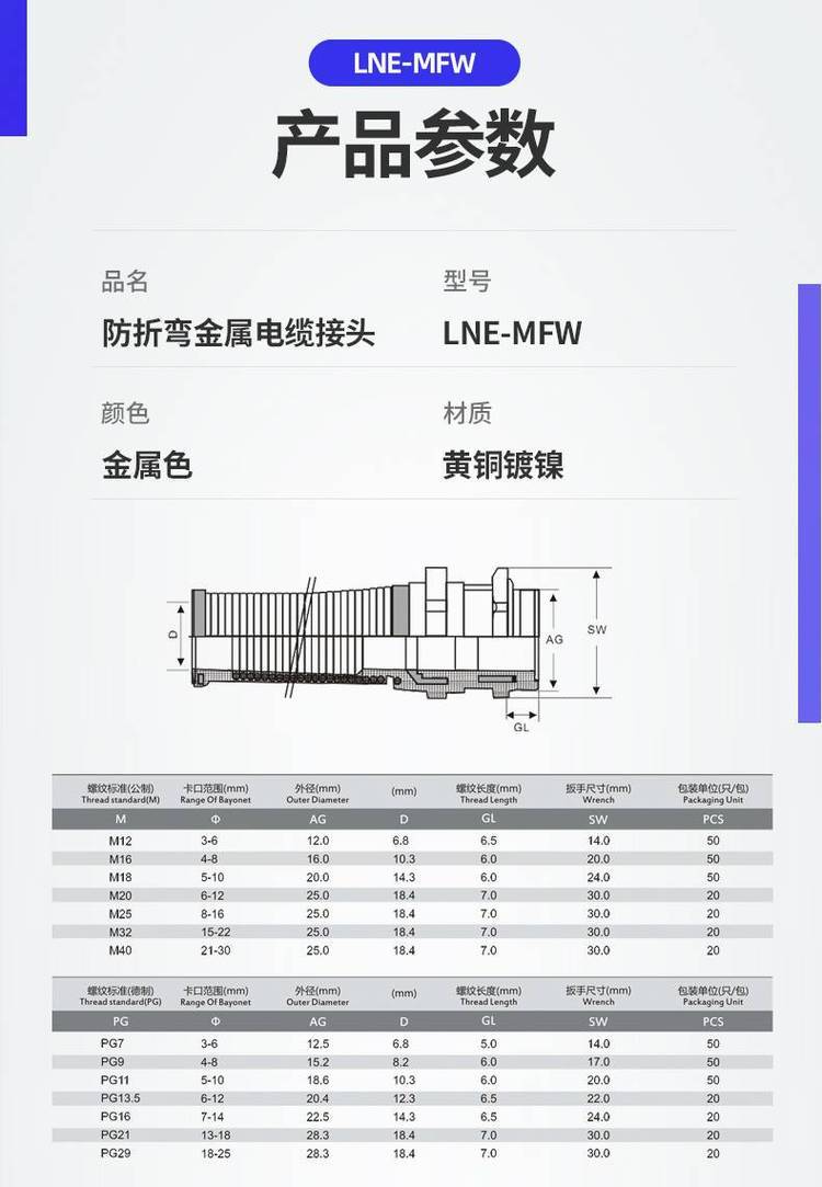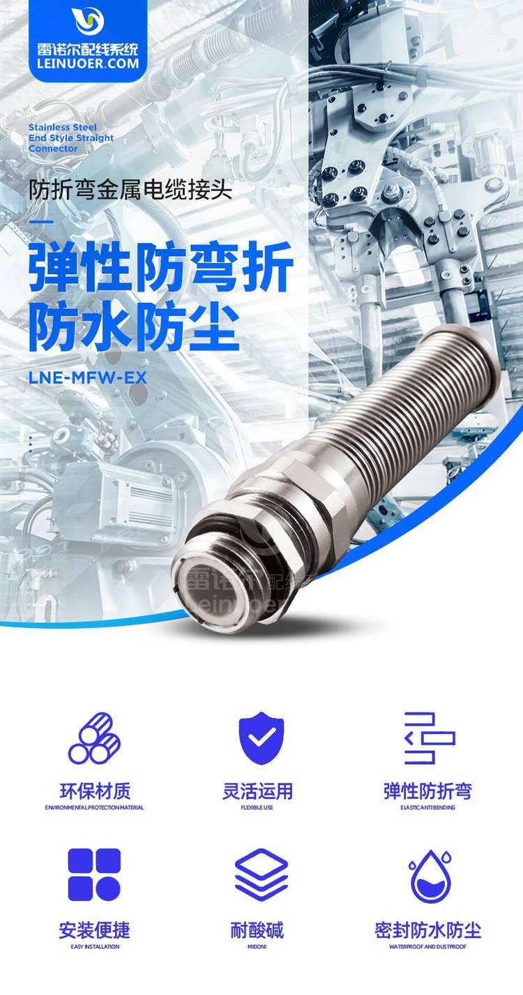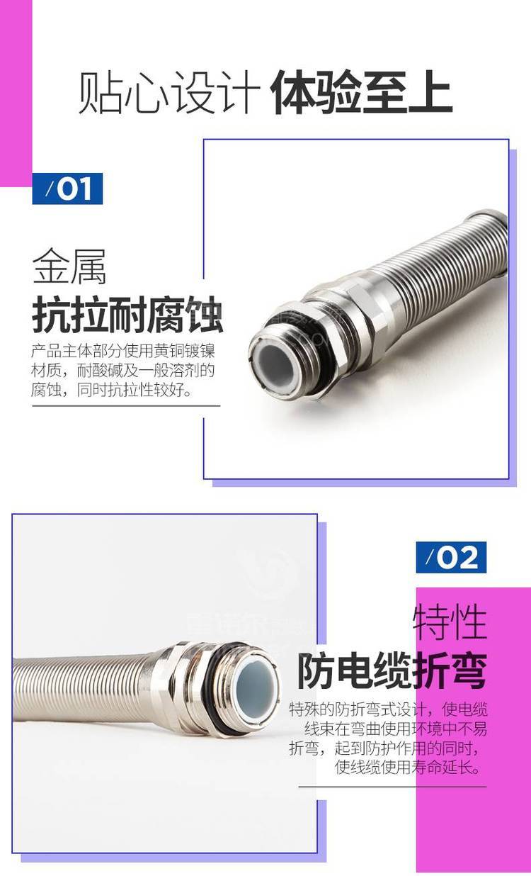雷諾爾LNE-MFW防折彎金屬電纜接頭黃銅鍍鎳防折斷鎖頭