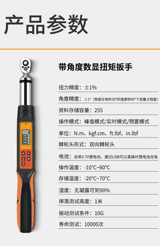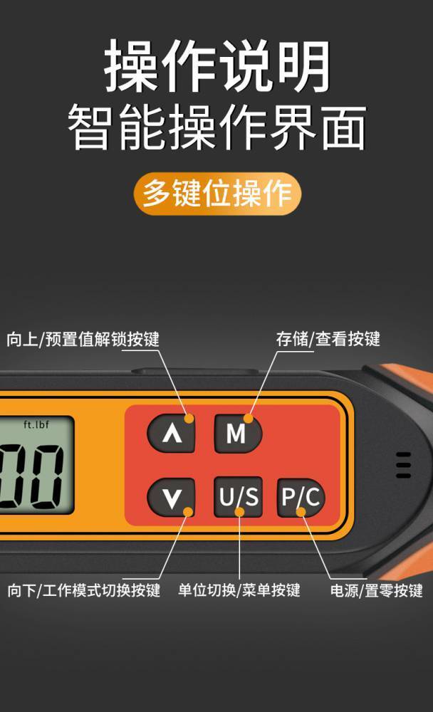 產(chǎn)品概述 數(shù)顯扭力扳手有別于一般的扭力扳手,擁有強(qiáng)大的操作功 能,包含扭力設(shè)定;單位設(shè)定;模式設(shè)定;數(shù)值儲存;數(shù)值清 除;數(shù)值輸出以及用戶校正功能。易于操作,通過安裝數(shù)字顯 示屏降低了對操作人員的要求。適用于汽車行業(yè)、機(jī)械行業(yè)等 的螺栓緊固及控制。????