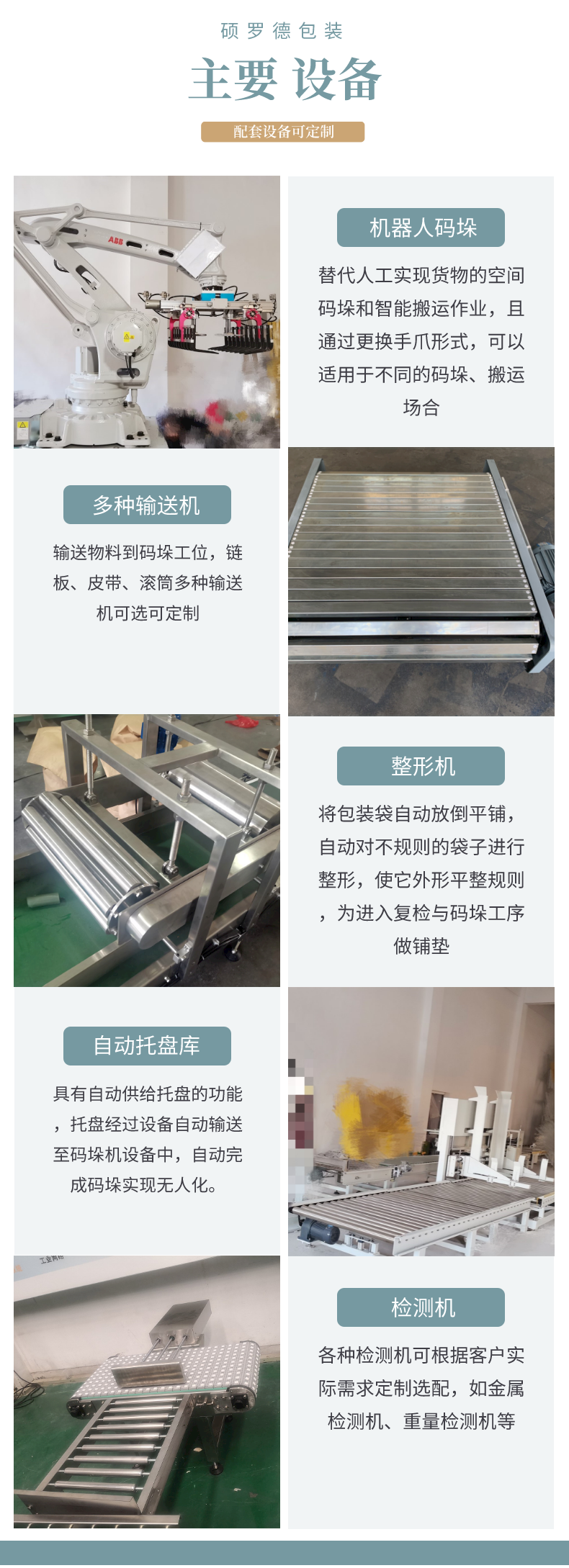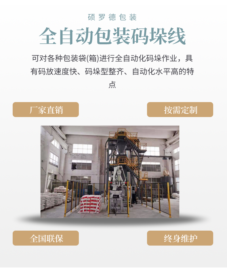碩羅德自動(dòng)包裝碼垛生產(chǎn)線高位碼垛機(jī)器手臂后段定制包裝流水線 |