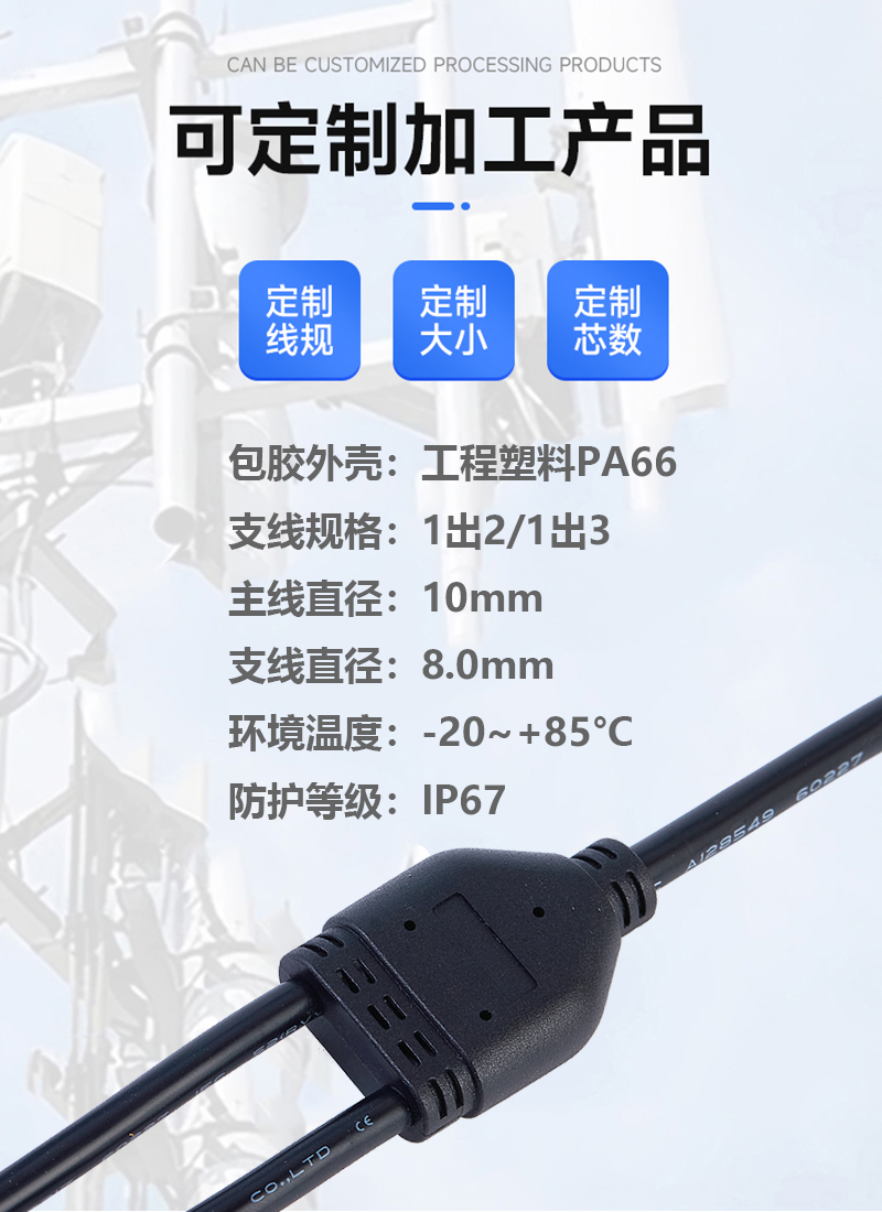 Y型一出二尼龍2芯公母對(duì)接插頭座戶外電源線纜暖通工業(yè)防水連接器 |