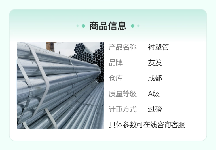友發(fā)A級防腐防銹襯塑管現(xiàn)貨代辦運(yùn)輸熱鍍鋅內(nèi)襯塑飲水管1寸冷水管 |