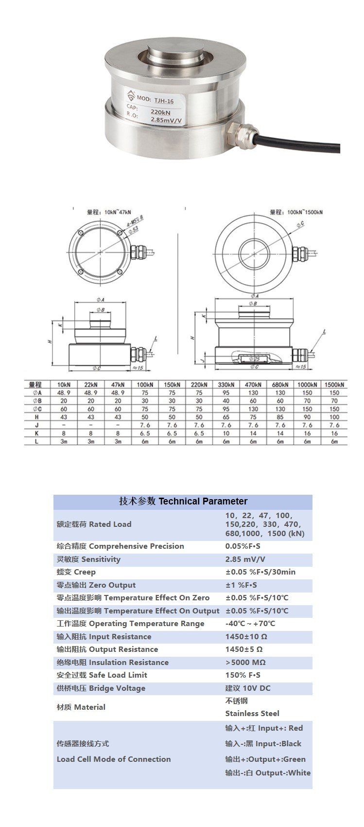 天光扭環(huán)式不銹鋼高溫防爆稱重RTN大型料罐汽車衡傳感器TJH-16 |