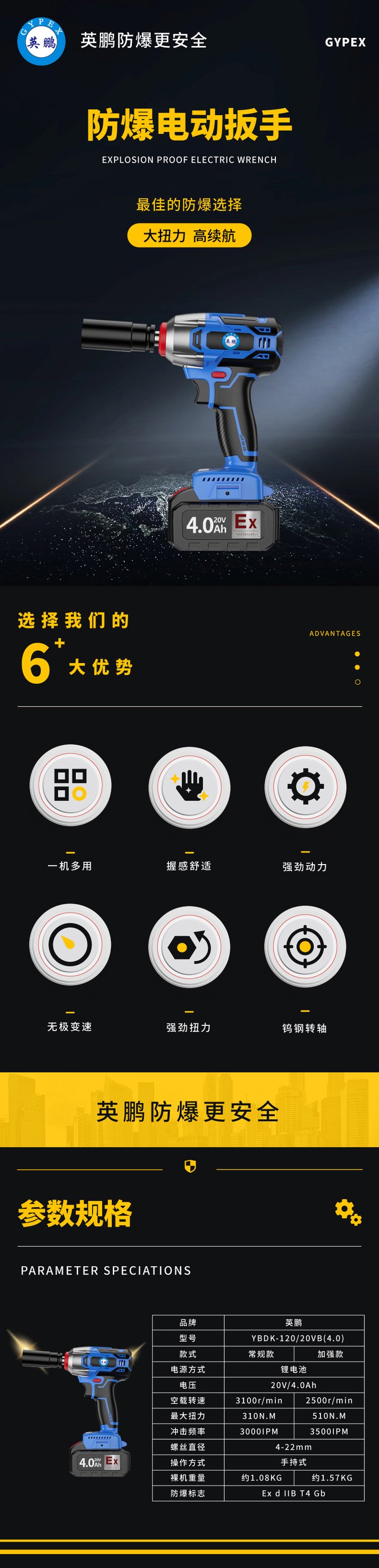 英鵬防爆電動(dòng)扳手常規(guī)款YBDK-120\/20VB(7.5) |