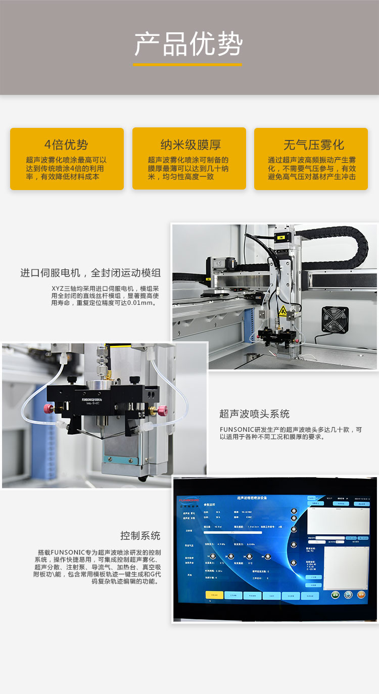 FUNSONIC超聲波噴涂設(shè)備半導(dǎo)體光刻膠涂覆超聲霧化噴嘴薄膜涂層 |