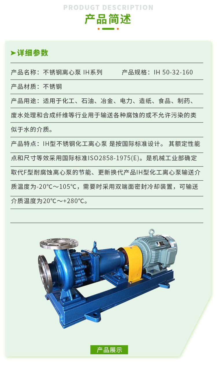 星球正源高壓泵IH不銹鋼離心泵國際標(biāo)準(zhǔn)設(shè)計(jì)源頭廠家