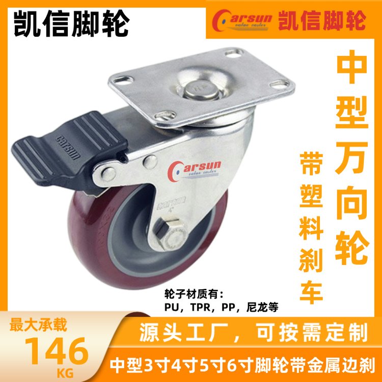 凱信中型萬向腳輪帶塑料剎車3寸3.5寸4寸5寸設(shè)備推車專用工業(yè)腳輪 |