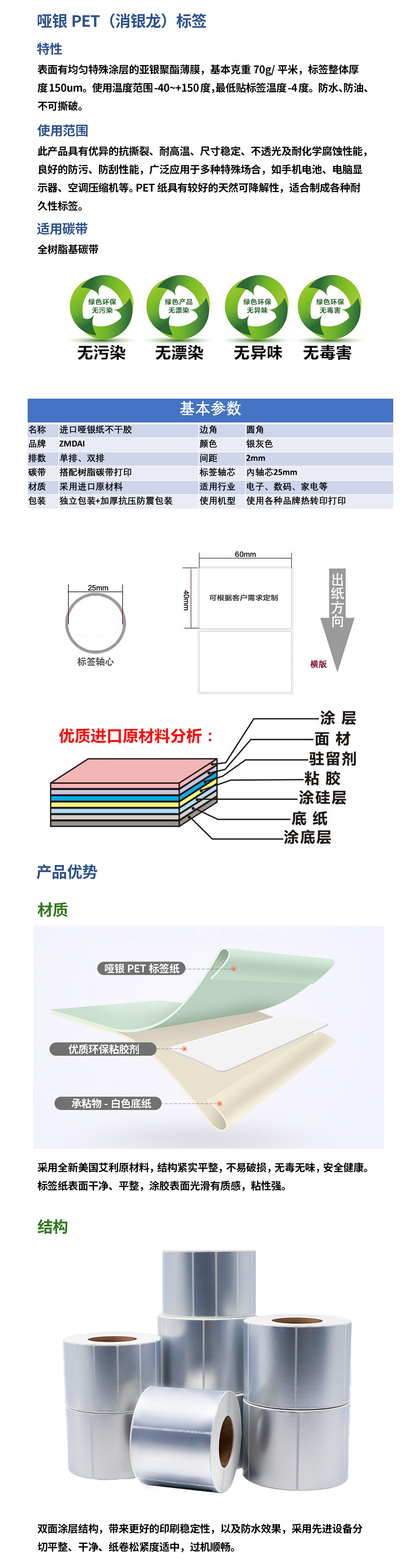 宏山啞銀PET紙標(biāo)簽?zāi)透邷乜顾毫逊拦芜m用各種熱轉(zhuǎn)印打印 |
