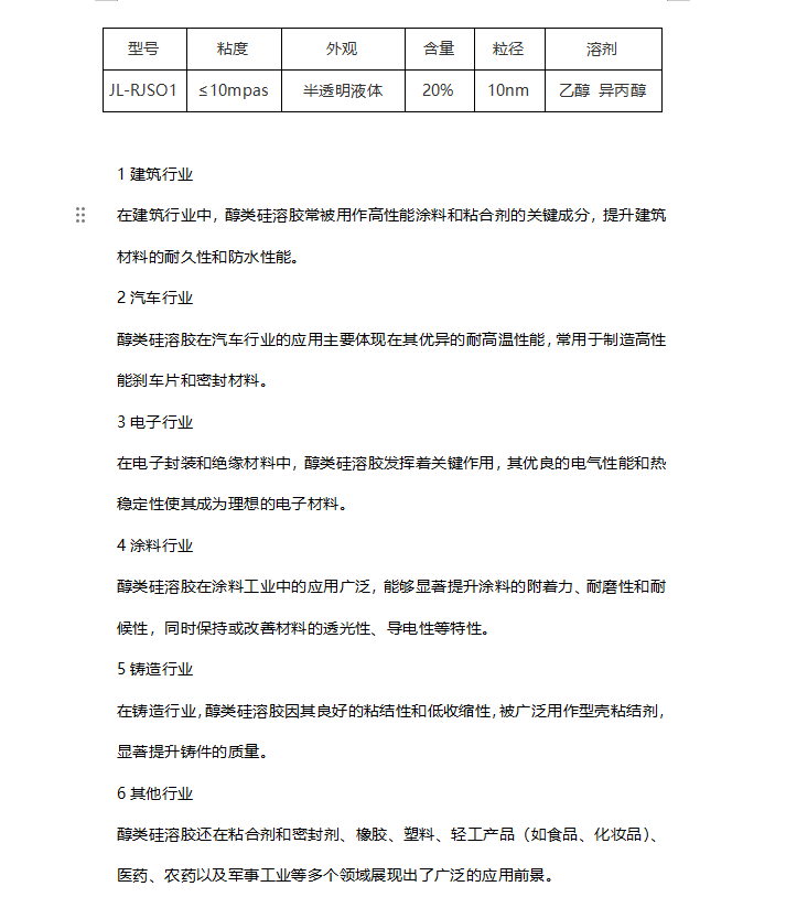 乙醇硅溶膠粘結(jié)性耐高溫性成膜性好SiO2醇類氧化硅 |