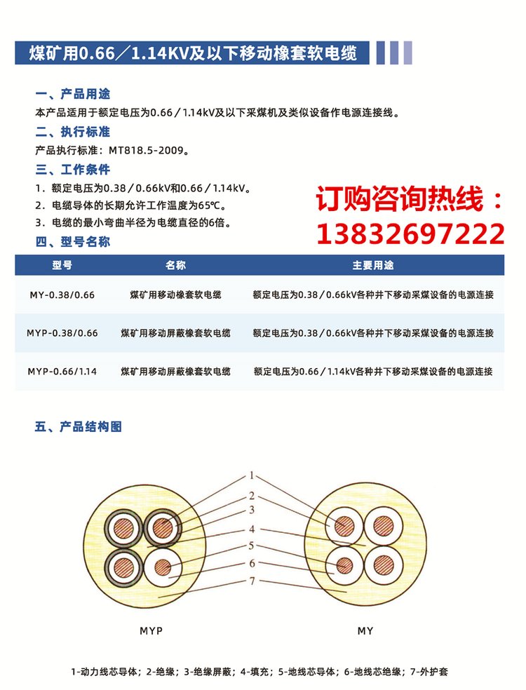 煤礦用移動(dòng)橡套軟電纜MYMYP-0.66\/1.14KV礦井阻燃防爆煤安認(rèn)證 |