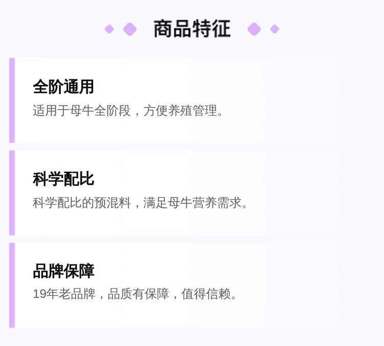 4母牛專用預(yù)混料強(qiáng)化維生素提高配種率避免弱犢死胎 |