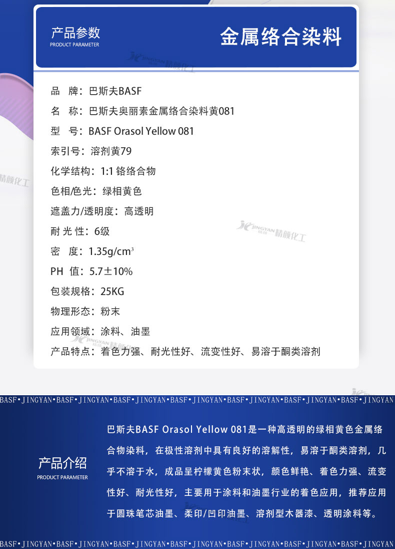 巴斯夫染料081檸檬黃德國BASF奧麗素Orasol金屬絡(luò)合染料溶劑黃79 |