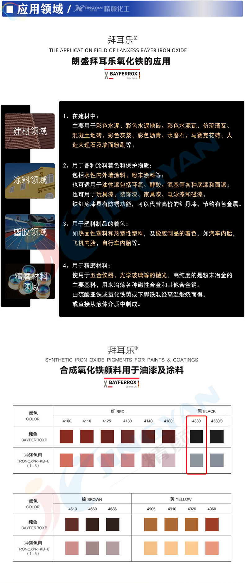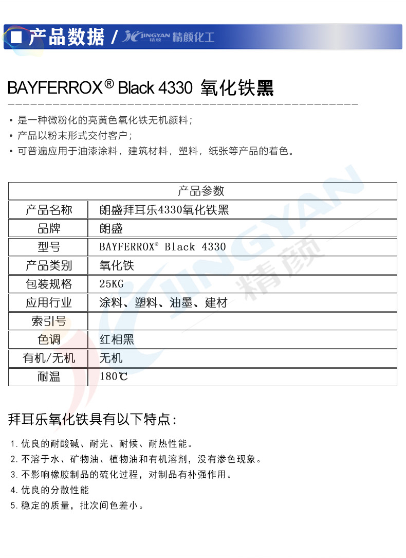 德國(guó)朗盛BAYFERROX拜耳樂4330氧化鐵黑無機(jī)顏料 |