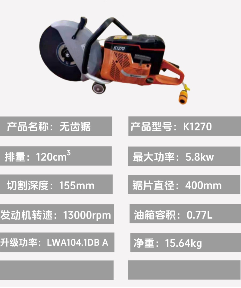 K1270燃油型手持切割機(jī)消防破拆切割鋸大功率汽油無齒鋸圓盤鋸 |