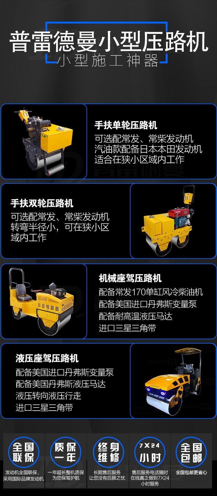 2噸小型壓路機(jī)價(jià)格 ? 小型壓路機(jī)價(jià)格表 ? 壓瀝青壓路機(jī)報(bào)價(jià) 普雷德曼機(jī)械有限公司 小型振動(dòng)壓路機(jī)無極變速 供應(yīng)小型壓路機(jī)雙驅(qū)行走房屋地基壓實(shí)小壓路機(jī)普雷德曼品牌直銷 小型壓路機(jī)壓實(shí)泥土厚度30-50公分;輕松壓實(shí),減少重復(fù)壓實(shí)的麻煩,為您施工省時(shí)省力更省錢! 小型壓路機(jī)配置重力式灑水系統(tǒng),加大式水箱,使小型壓路機(jī)在瀝青路面壓實(shí)時(shí),操作更加方便快捷,減少來回加水的麻煩! 我公司位置在山東省濟(jì)寧市高新區(qū),歡迎您來廠參觀指導(dǎo);可免費(fèi)報(bào)銷來回路費(fèi),提供免費(fèi)食宿! 網(wǎng)上價(jià)格不準(zhǔn),產(chǎn)品詳情及報(bào)價(jià)?請(qǐng)來電咨詢! |
