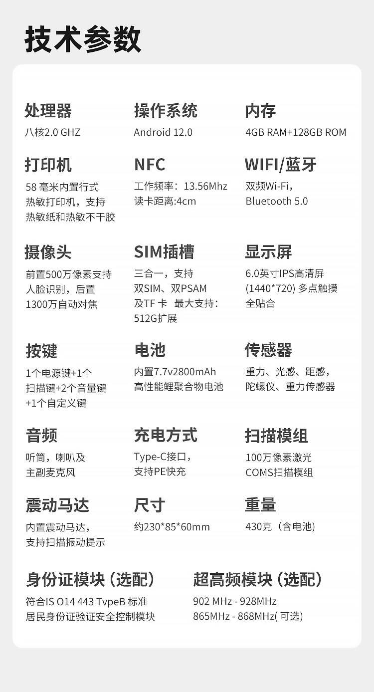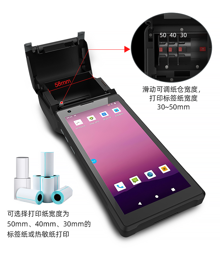 掃描打印寬度可調(diào)節(jié)一體智能終端醫(yī)廢管理手持機大容量可拆卸電池 |