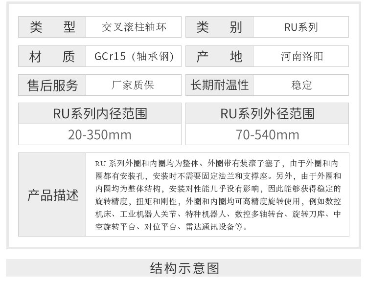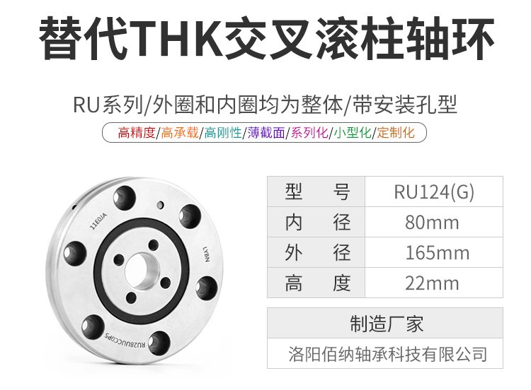 RU124(G)\/內(nèi)80\/外165\/高22\/交叉滾柱軸環(huán)帶安裝孔轉(zhuǎn)臺替代THK軸承 |