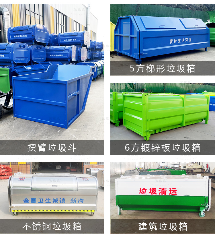6立方勾臂垃圾箱梯形大容量街道垃圾收集箱車載碳鋼材質拉臂箱 |