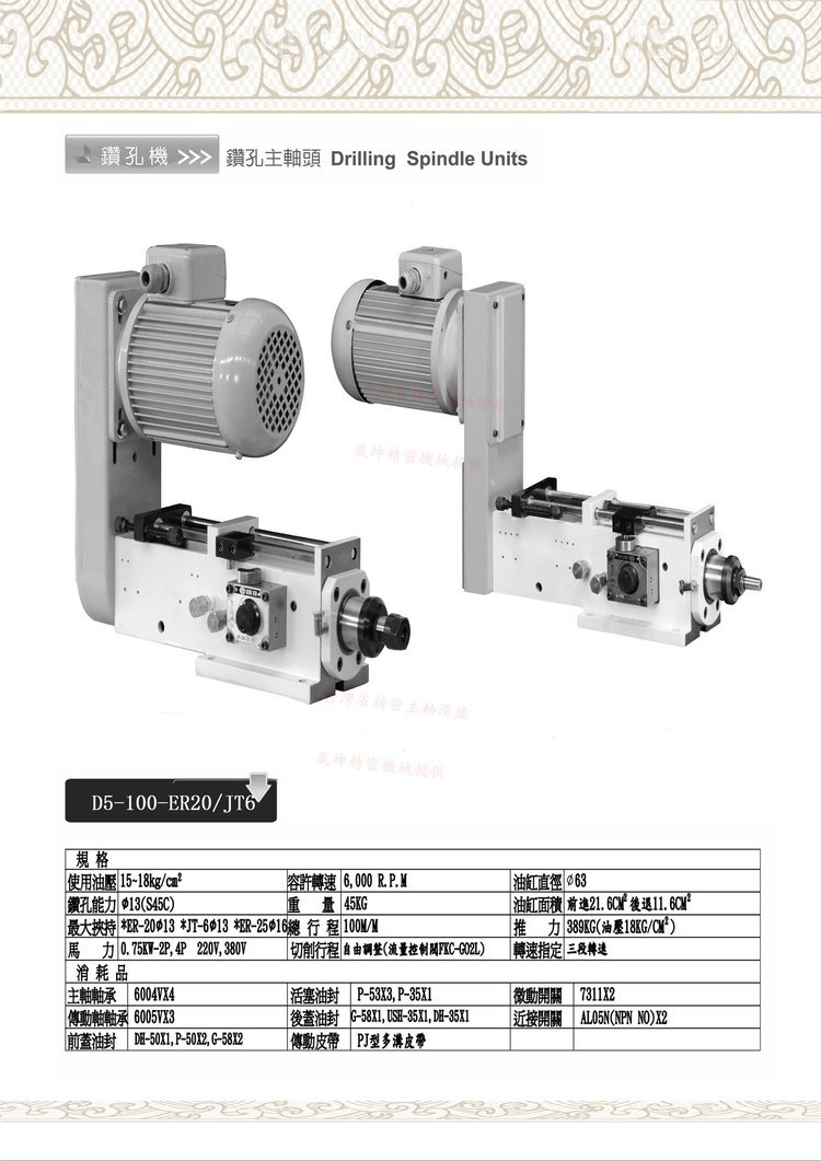 晟坤品牌D5-100-ER25動(dòng)力頭主軸轉(zhuǎn)速1000-8000RPM |