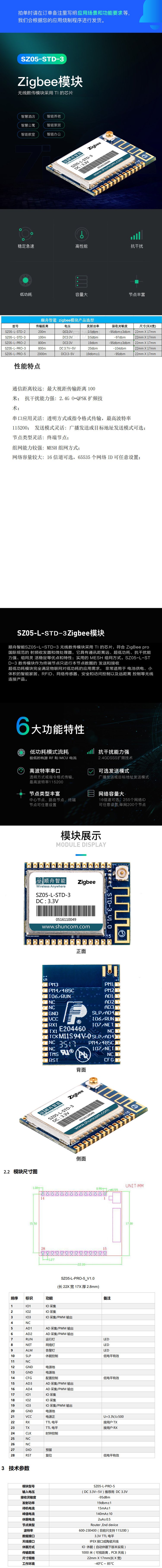順舟SHUNCOMzigbee3.0低功耗mesh組網智能模塊 |