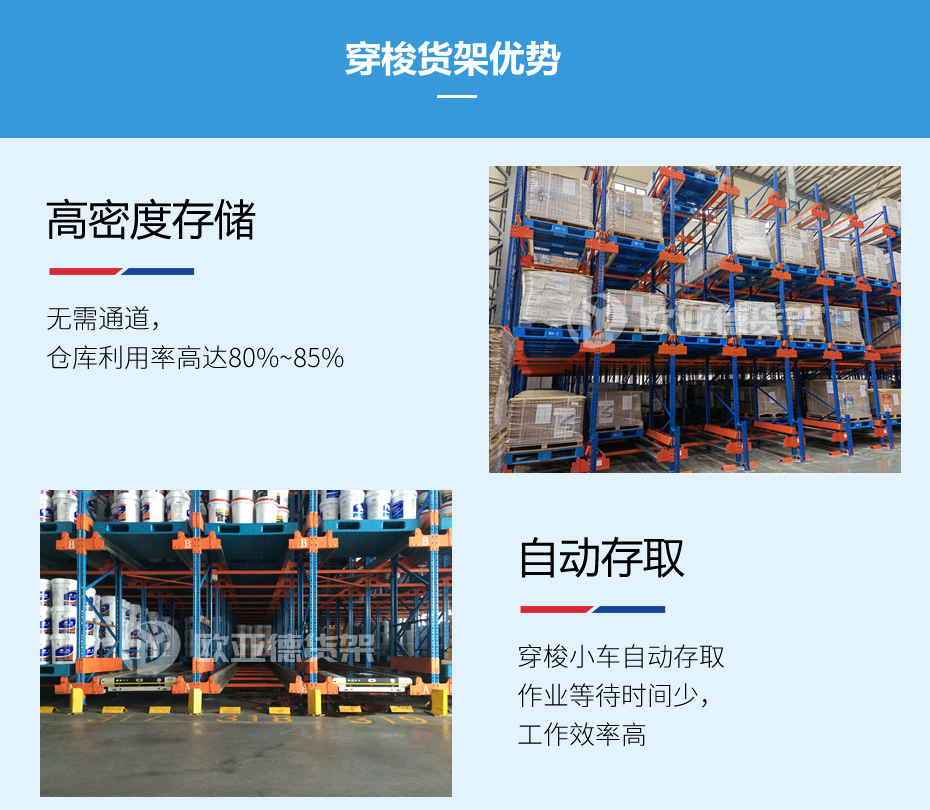 歐亞德食品倉庫專用重型自動化穿梭立體貨架定制設計駛進駛出 |