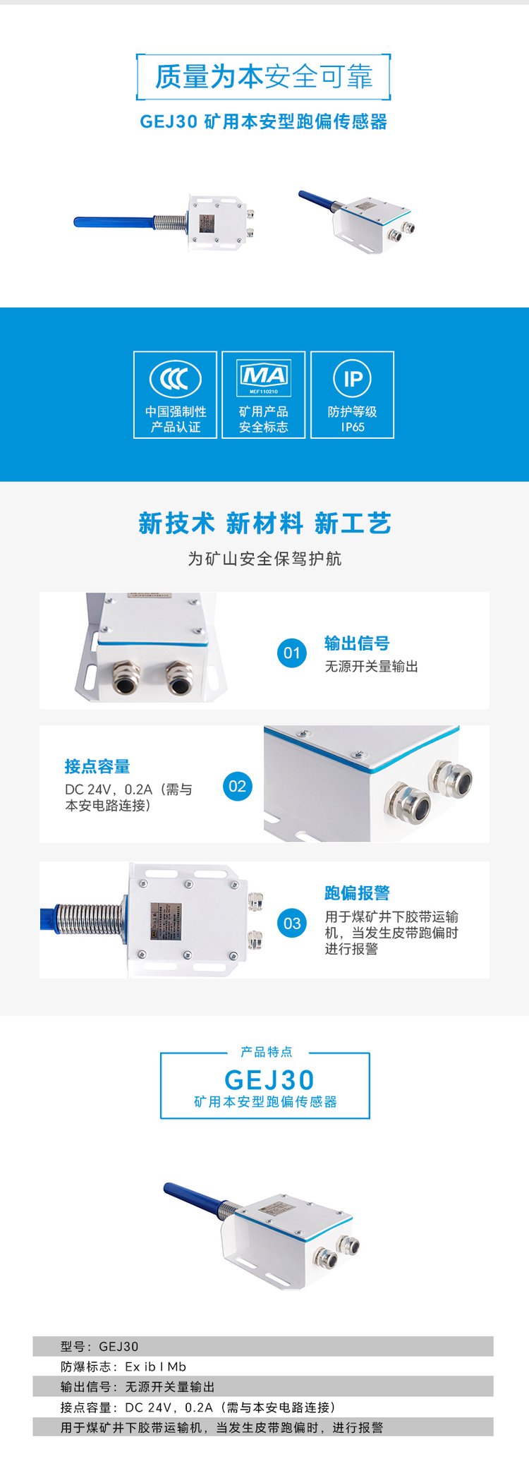 GEJ30礦用本安型跑偏傳感器煤礦井下膠帶運輸機跑偏報警 |