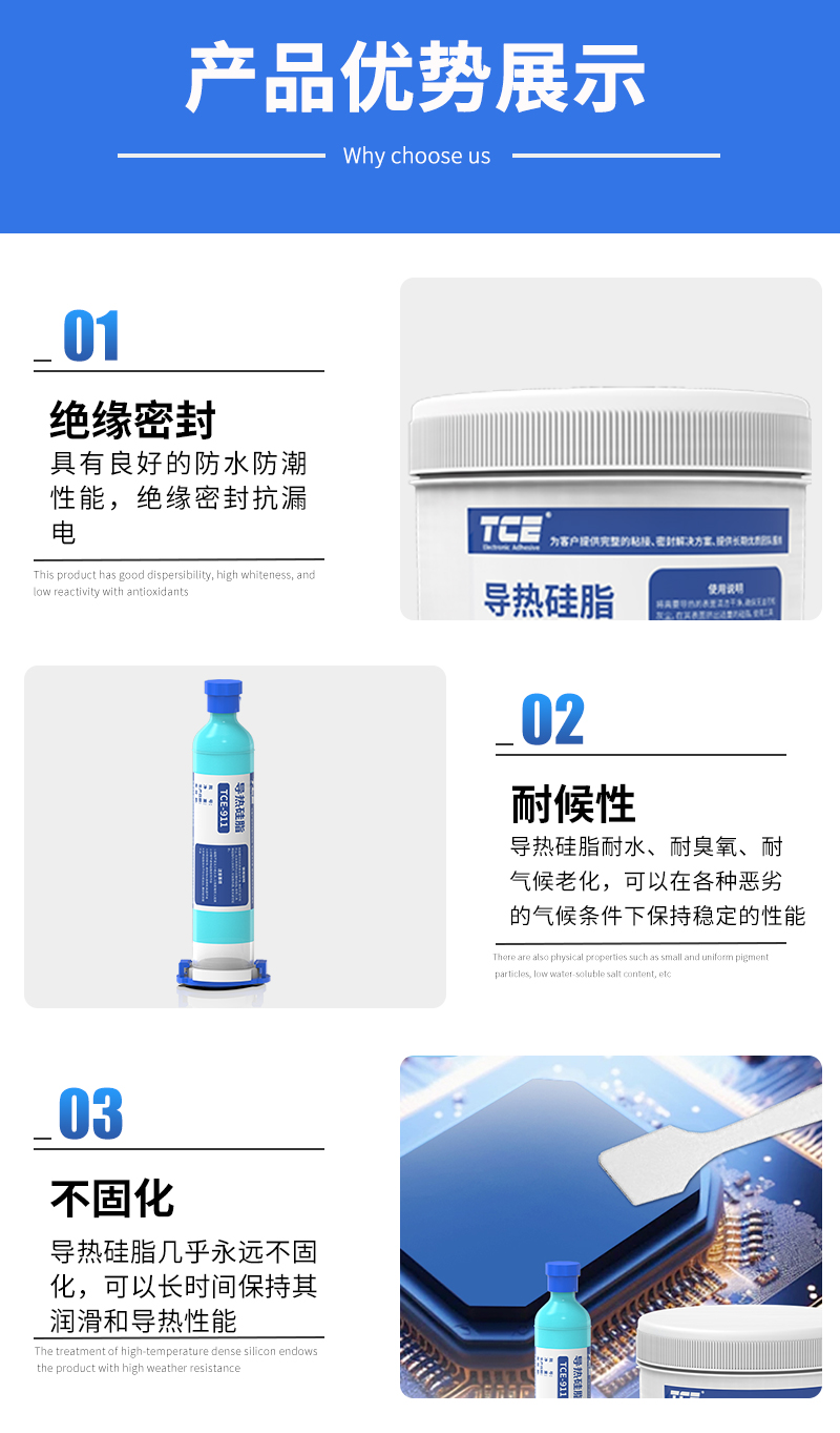 高導熱不固化1.5導熱硅脂cpu散熱器耐高溫導熱油TCE-911 |