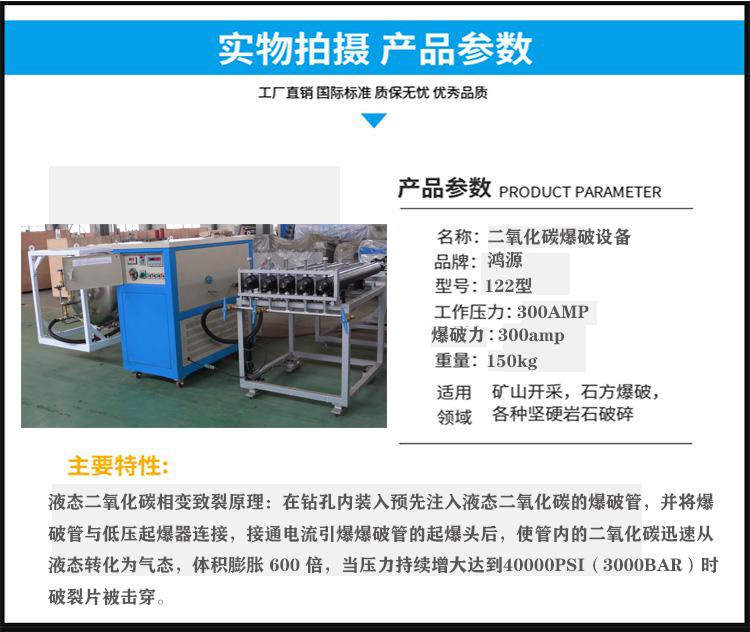 用二氧化碳爆破設(shè)備開采巖石礦山靜態(tài)爆破鴻源機(jī)械 |