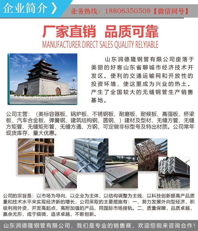 經營范圍:(成都,天津,安陽,寶鋼,包鋼,冶鋼,鞍鋼,衡鋼,無錫,首鋼,本鋼,萊鋼,舞鋼,天鋼,長城特鋼,撫鋼,浙江,江蘇)等各大鋼廠生產的無縫管,結構管,流體管,低中壓鍋爐管,高壓鍋爐管,化肥專用管,石油套管,船舶用管,低溫管、管線管、不銹鋼管、鎳基合金管、哈氏合金管、及各種材質國產進口:美標、歐標、德標、日標、美國、意大利、德國、歐洲、日本、馬來西亞等。鋼板:(美標容器板、鍋爐板、不銹鋼板、耐磨板、耐候板、高強板、橋梁板、汽車合金板、彈簧鋼、建筑結構鋼、圓鋼、)建材及型材、無縫方管、無縫方矩管、無縫矩形管、無縫方通、方鋼、可定做非標型號及特出材質。 公司的宗旨是:以市場為導向、以企業(yè)為主體、以結構調整為主線、以科技創(chuàng)新提高產品質量和技術水平來實現(xiàn)經濟新的增長,公司采取的主要措施有:一、努力發(fā)展外向型經濟,積極利用外資,開發(fā)高起點,高附加值的產品,同國際市場接軌。二、質量保障,品質卓越,贏余無形,成于細微,追求卓越,不斷創(chuàng)新。經營多年的勵精圖治,承載往昔的光榮和創(chuàng)業(yè)的夢想,公司由初創(chuàng)的1000萬元總資產,發(fā)展成為擁有固定資產3000萬元,員工50余人,年產值達4000萬元的山東省優(yōu)秀企 業(yè)。在多年的市場搏擊中,潤德隆鋼管有限公司積累了豐富的生產和銷售經驗和技術開發(fā)能力,形成強大的生產配套網(wǎng)絡體系,迎著時代的春風,公司不斷開發(fā)新品,使產品結構得到合理延伸。 庫存常備材質為:10 20 35 45 20G、Q345(ABCDE)Q355(ABCDE)16Mn、27SiMn、30CrMnSi、35CrMnSiA、15CrMoG、35CrMo、42CrMO、12Cr1MoV、TP91、TP22、TP11、SA106(ABCD) S355JOH、S355J2H、S275JOH、S275J2H、Q345R、Q24Q、SA387 SA516、L245N、L360、L390、L245QS、ASTM A500、60si2Mn、65Mn、Q390、Q690、Q550、Q460、Q420(ABCDE)等等。 本公司可為客戶提供以下服務: ◆批零兼營,一支(張)起售。 ◆顧客可以隨意挑選所需要的長度或其他要求。 ◆代訂、代購各類鋼材合同或特殊規(guī)格材質。 ◆調劑本庫暫缺規(guī)格,省去您奔波采購的辛勞。 ◆代辦運輸,量大可直接發(fā)貨到您指定的地點。 ◆節(jié)假日不休息,隨到隨提,為新老客戶提供更高,更好的服務。 ◆所售鋼管,公司負責全面質量跟蹤,為您排除后顧之憂。 ◆本公司所供管材,板材,建材及型材均附鋼廠原始材質書。 現(xiàn)庫存量達上萬余噸,上千種型號,材質,是全國規(guī)模較大的無縫管,板材,建材型材供應商,先后在全國設立了七個辦事處。公司以良好的信譽、優(yōu)質的產品、雄厚的實力、低廉的價格享譽全國,產品深得客戶信賴。十幾年的經營歷練了公司在各個經營環(huán)節(jié)的成熟與規(guī)范,并與全國各大廠家及經銷商有穩(wěn)固的業(yè)務往來。我公司奉行“誠信”的經營理念,創(chuàng)新進取,精益求精,內強素質,外塑形象!將真心誠意服務于客戶,愿與新老客戶攜手共進、共創(chuàng)偉業(yè)! 竭誠歡迎各界朋友前來惠顧!另外公司控股建設了二條生產線,可生產外徑8-920,壁厚1-85mm,20#、45#、35 Q355(ABCDE)無縫管。及耐候鋼板激光切割、雕刻、鏤空、景觀設計加安裝等,歡迎訂購! 主要用途 集裝箱、電廠 煙囪、鐵道工程等戶外用鋼如大型戶外雕塑用鋼,耐候鋼是介于普通鋼和不銹鋼之間的價廉物美的低合金鋼系列,在融入現(xiàn)代冶金新機制、新技術和新工藝后得以可持續(xù)發(fā)展和創(chuàng)新,屬世界超級鋼技術前沿水平的系列鋼種之一。 主要優(yōu)勢 耐候鋼由普碳鋼添加少量銅、鎳等耐腐蝕元素而成,具有優(yōu)質鋼的強韌、塑延、成型、焊割、磨蝕、高溫、疲勞等特性;耐候性為普碳鋼的 2~8 倍,涂裝性為普碳鋼的 1.5~10 倍,能減薄使用、裸露使用或簡化涂裝使用。該鋼種具有耐銹,使構件抗腐蝕延壽、減薄降耗,省工節(jié)能的特性,使構件制造者、使用者受益。 主要特點 指具有保護銹層耐大氣腐蝕,可用于制造車輛、橋梁、塔架、集裝箱等鋼結構的低合金結構鋼。與普碳鋼相比,耐候鋼在大氣中具有更優(yōu)良的抗蝕性能。與不銹鋼相比,耐候鋼只有微量的合金元素,諸如磷、銅、鉻、鎳、鉬、鈮、釩、鈦等,合金元素總量僅占百分之幾,而不像不銹鋼那樣,達到百分之十幾,因此價格較為低廉。 |