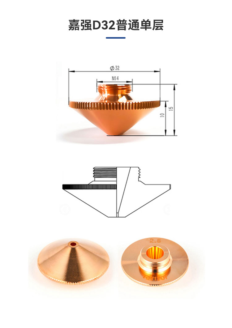 直徑?32單雙層適用于嘉強(qiáng)激光切割頭切割噴嘴 |