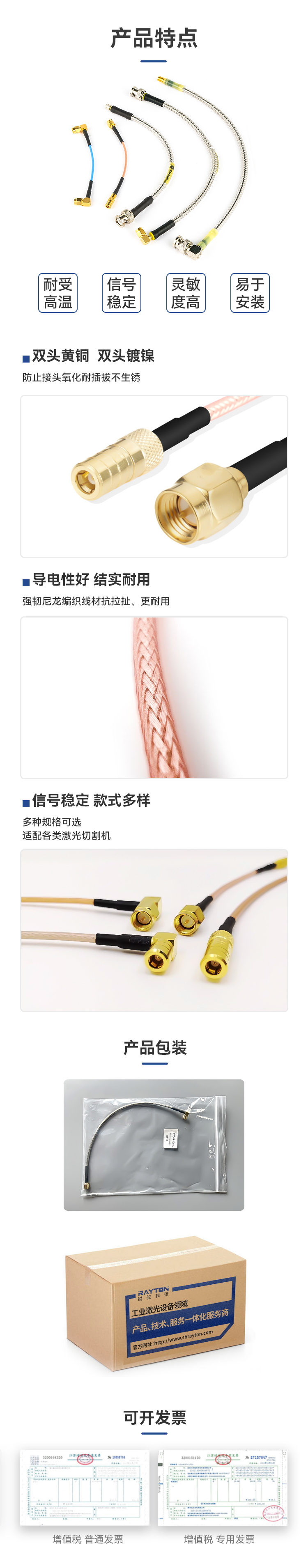 嘉強Raytools激光切割頭SMA轉(zhuǎn)SMA長300mm傳感器電纜感應(yīng)線 |