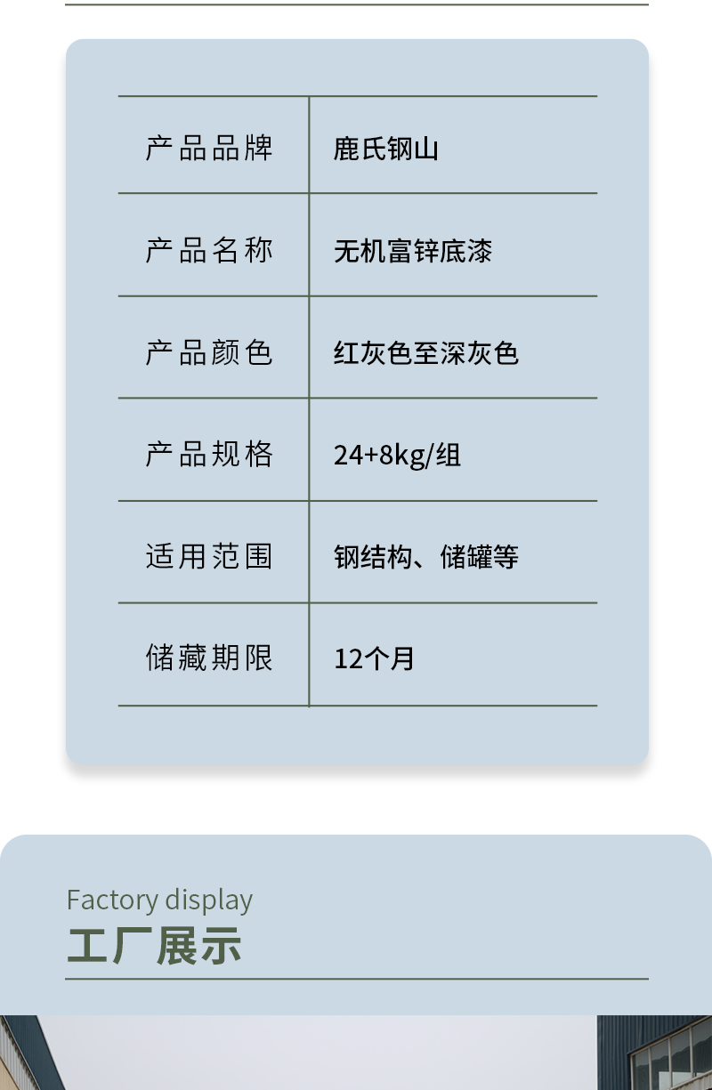 機械設備鋼結構用無機富鋅底漆油罐化工防腐防銹中間漆漆膜堅韌 |