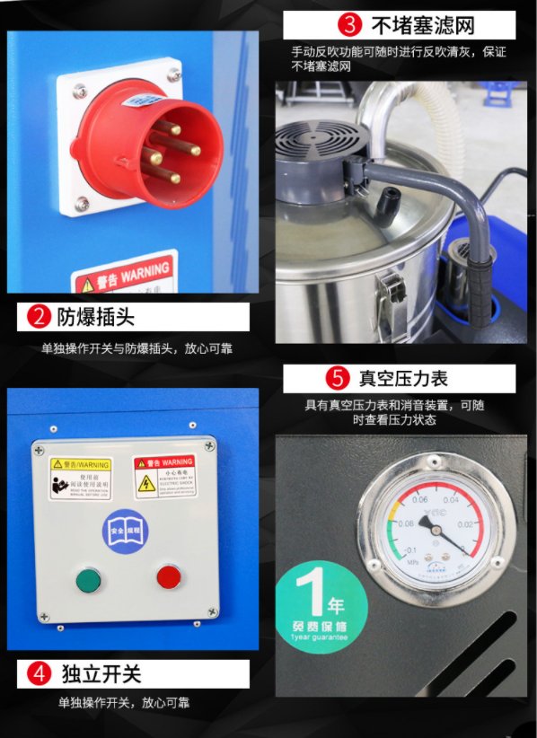 單相220V工業(yè)吸塵器? 鋼鐵廠工業(yè)吸塵器 1、嚴格按照工業(yè)標準制造的DL系列重型工業(yè)吸塵器系列 ,配備的工業(yè)油輪式全合金銀式主機, 主機可選擇進口或國產(chǎn),所配電控元件均為國際優(yōu)質(zhì)器件。電器控制系統(tǒng)主機及相關(guān)器件符合歐盟CE認證.絕緣等級為IP54.吸力強動且可連續(xù)長時間在環(huán)境惡劣場合工作。 2、積塵與過濾箱采用304不銹鋼或重金屬材質(zhì)制造, 防腐、防銹,堅固前用 ,可滿足環(huán)境惡劣場所的吸塵工作。 3、配備的無縫隙高密度過濾器及各種 濾筒式過濾器 ,能更有效的保護馬達,可設(shè)置多級濾精度, 達到各種生產(chǎn)現(xiàn)場的需要。 4、隨機附帶的各種配件能大限度的滿足不同的工作要求, 大容量桶身 ,附有積塵箱升降裝置,讓傾倒回收物更加方便。 5、本設(shè)備適用于石化, 船舶,鋼潛, 化工,汽車等重型工業(yè)制造場合。 6、可根據(jù)您的生產(chǎn)現(xiàn)場的需要設(shè)計制造. 7、表內(nèi)公布的參數(shù)為在中國境內(nèi)使用?筛鶕(jù)國別要求單獨設(shè)計制造。 單相220V工業(yè)吸塵器? 鋼鐵廠工業(yè)吸塵器 |