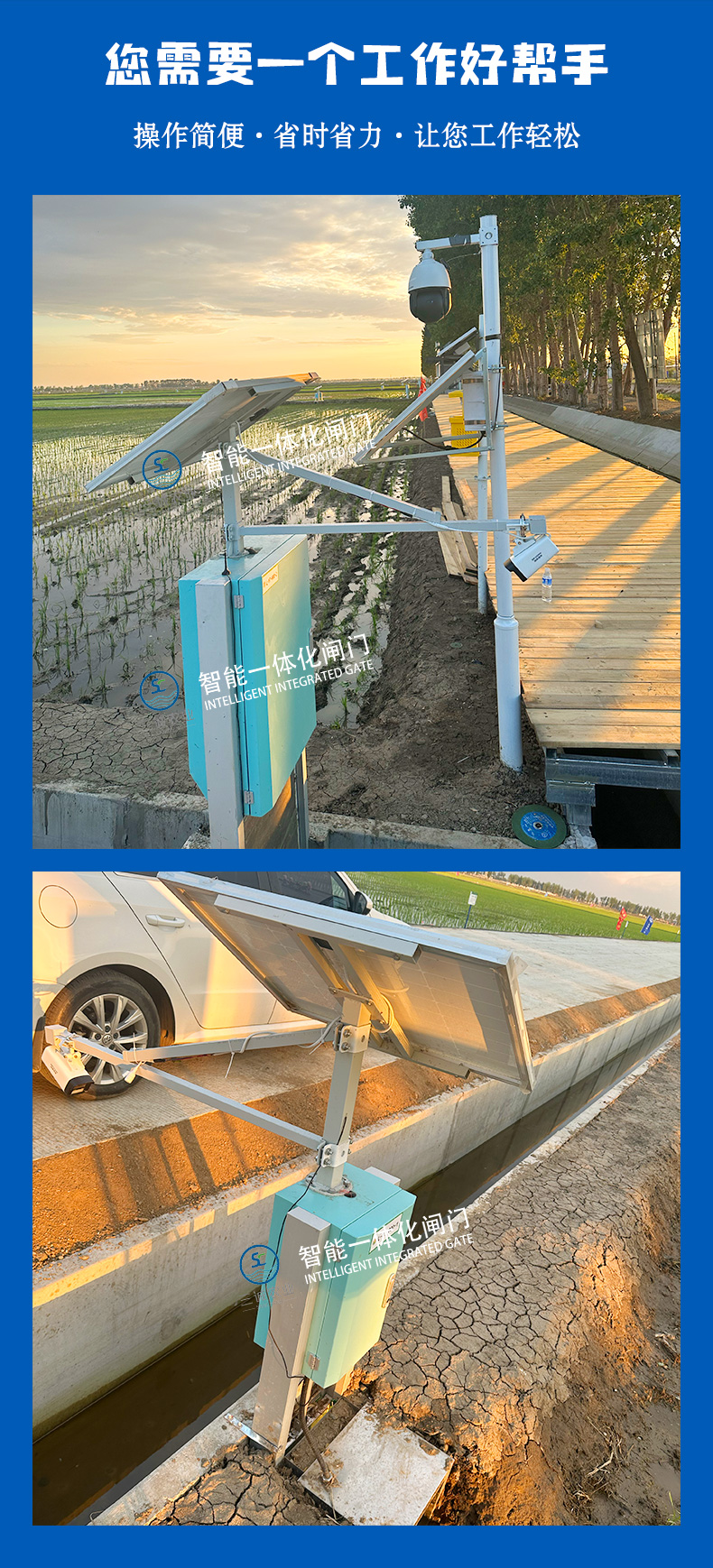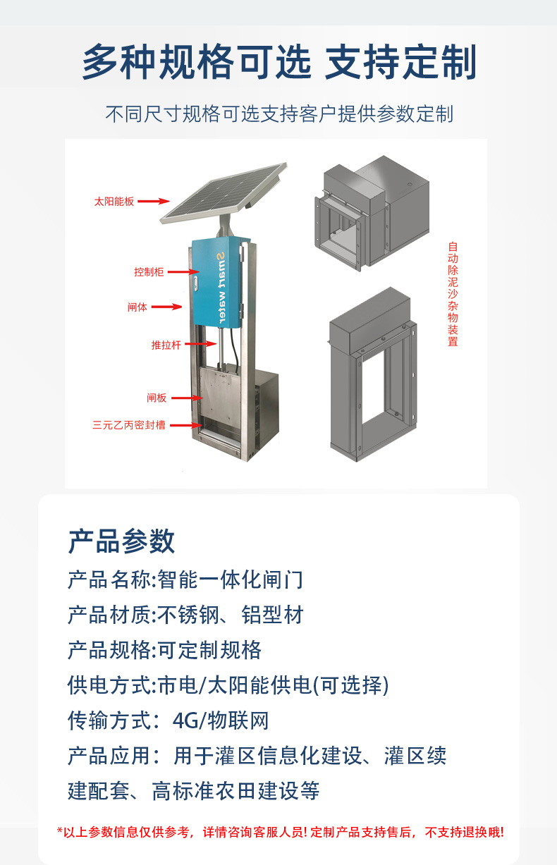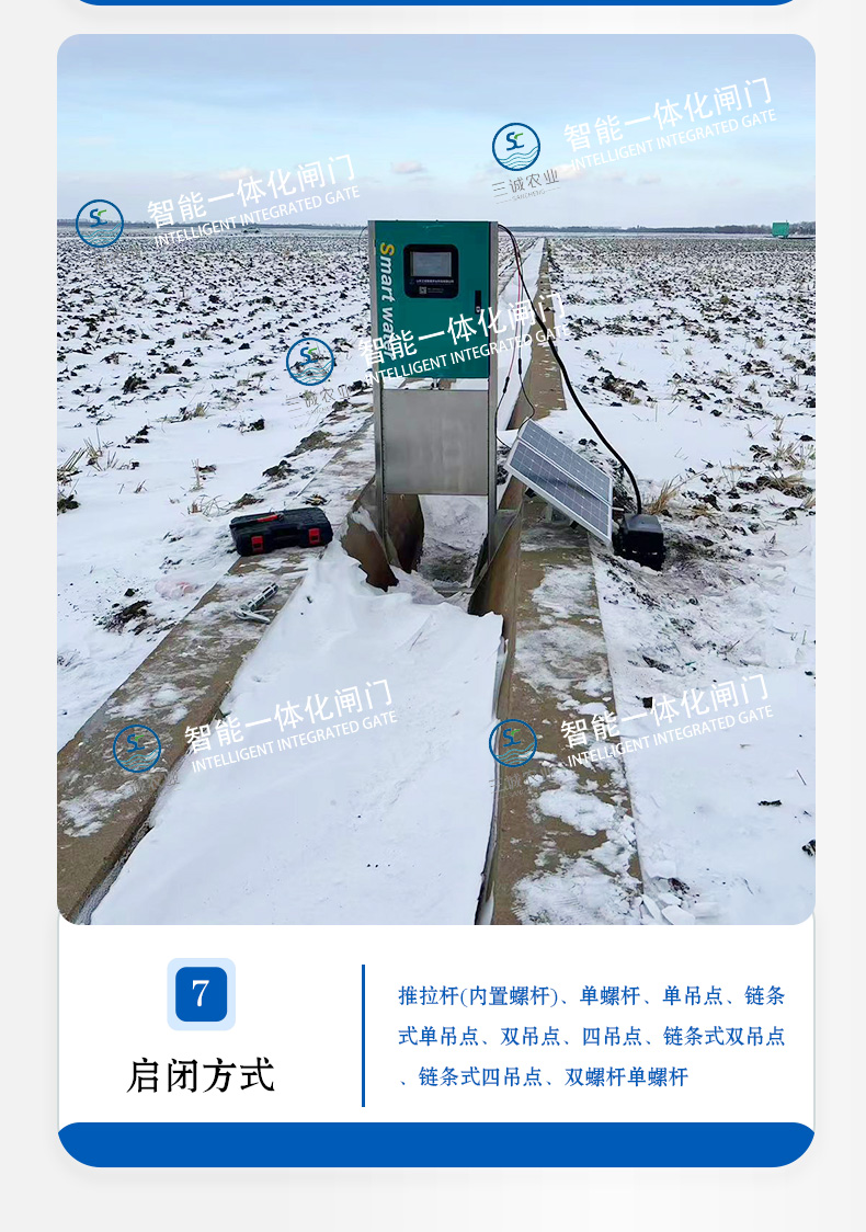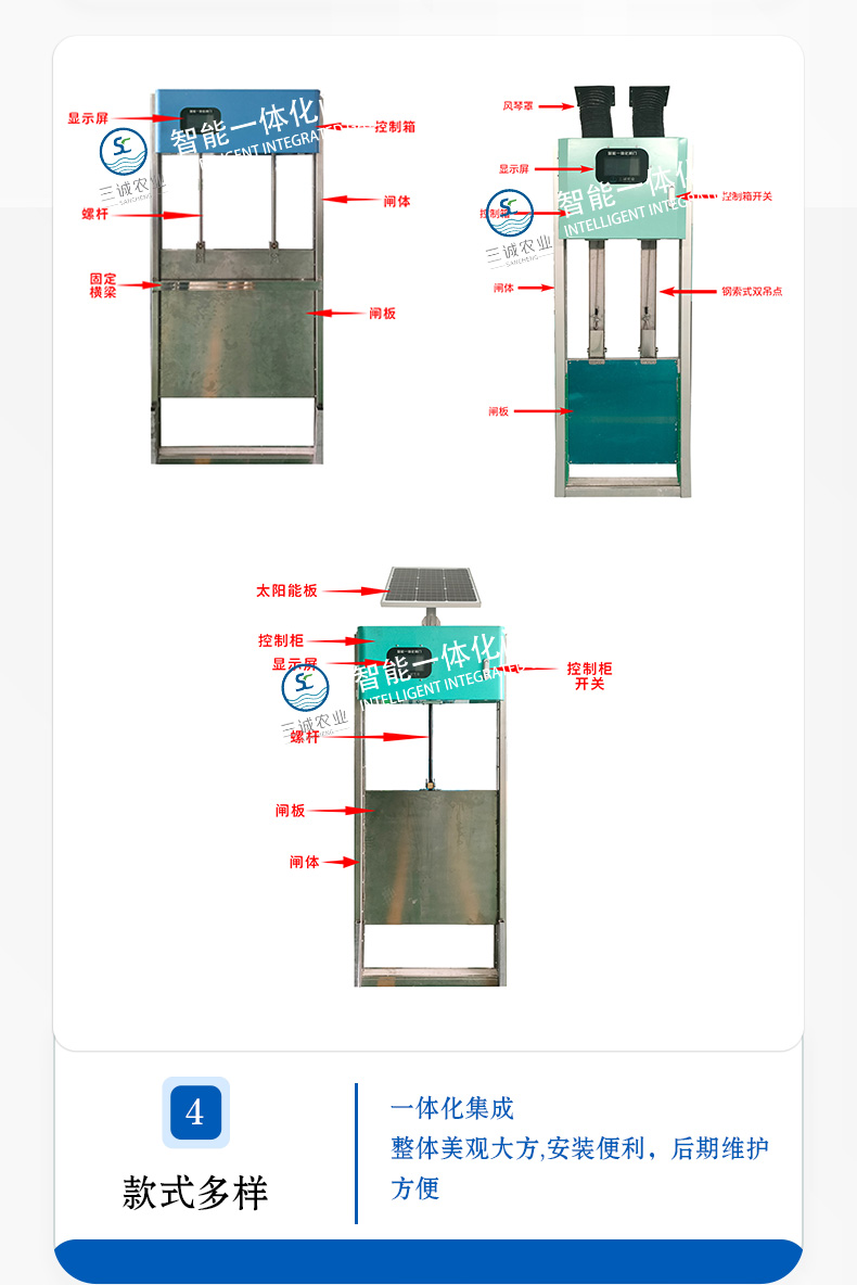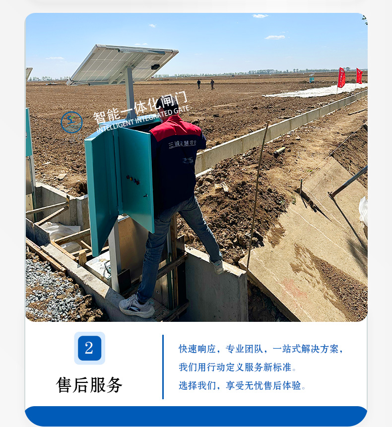 三誠稻田分水閘農(nóng)田遠(yuǎn)程明渠灌溉太陽能市電智能測控一體化閘門 |