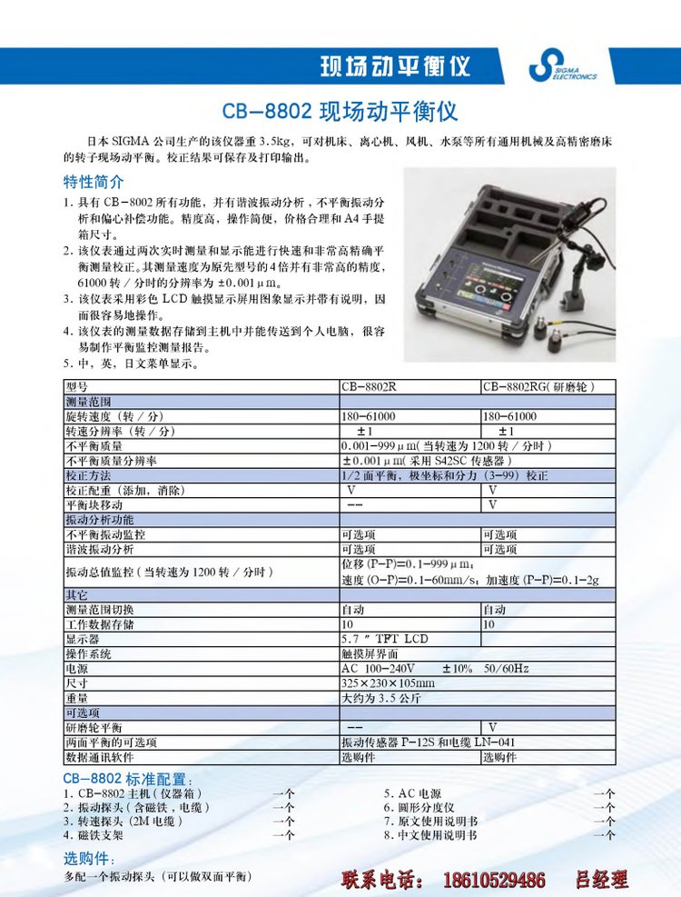 日本西格瑪風(fēng)葉平衡機(jī)SB8805便攜式動(dòng)平衡儀 |