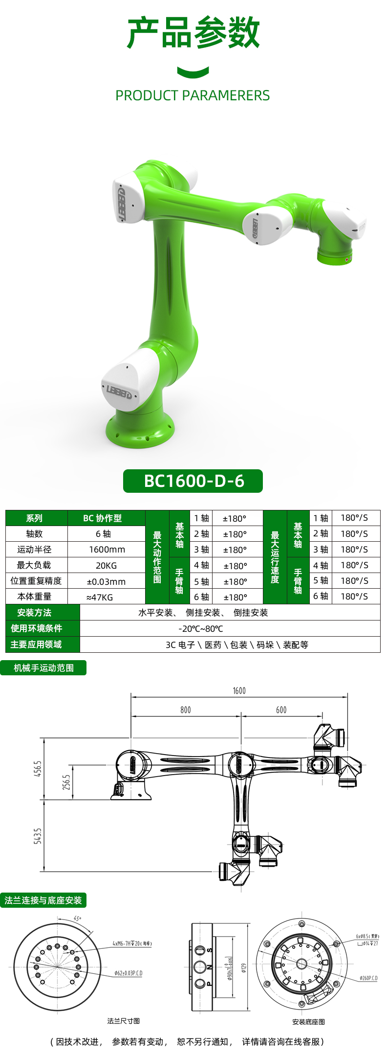 爾必地協作機器人機械手臂沖壓裝配涂膠柔性裝配教學臂長1600mm |