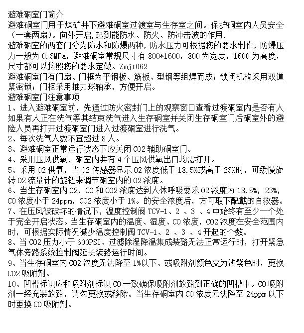 避難硐室門用于煤礦井下過渡室與生存室之間使用安全 |